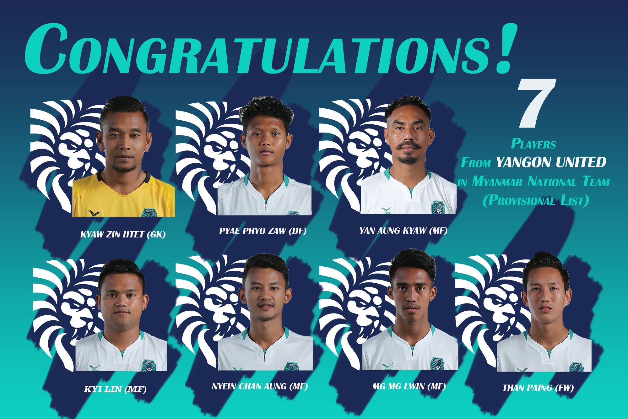 Seven players from Yangon United were chosen for the Myanmar national team’s tentative squad, according to the Yangon-based club. Striker Than Paing, midfielders Yan Aung Kyaw, Nyein Chan Aung, Maung Maung Lwin and Kyi Lin, defender Pyae Phyo Zaw, and goalkeeper Kyaw Zin Htet were picked up by Myanmar national football team’s Head Coach.
