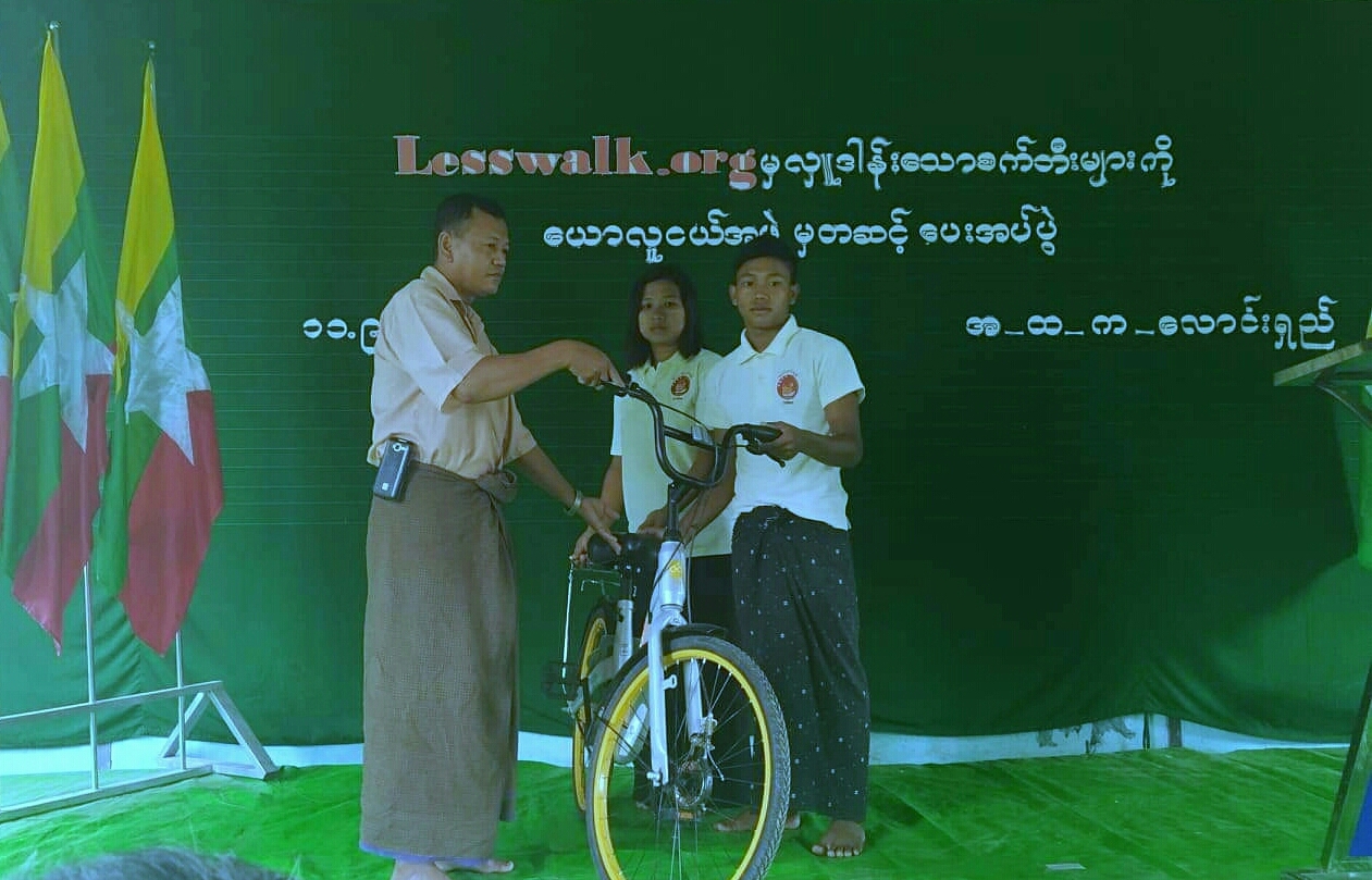 Lesswalk.org, a Singapore-based philanthropic organization founded by Myanmar entrepreneur Mike Than Tun Win donated 492 bicycles to students from some schools in Yaw Region.
