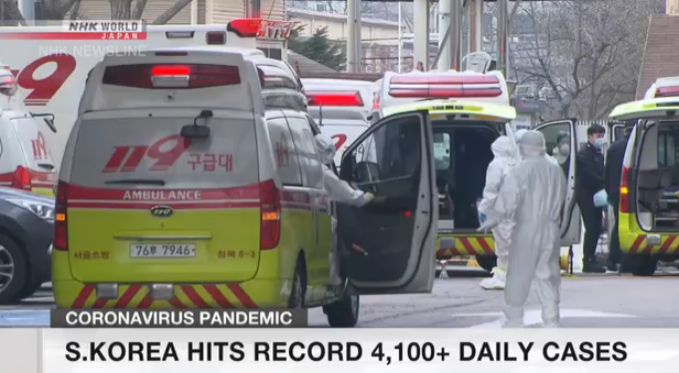 The South Korean government confirmed 4,116 new cases on Tuesday. The figure was more than 800 higher than its previous daily record on November 17.