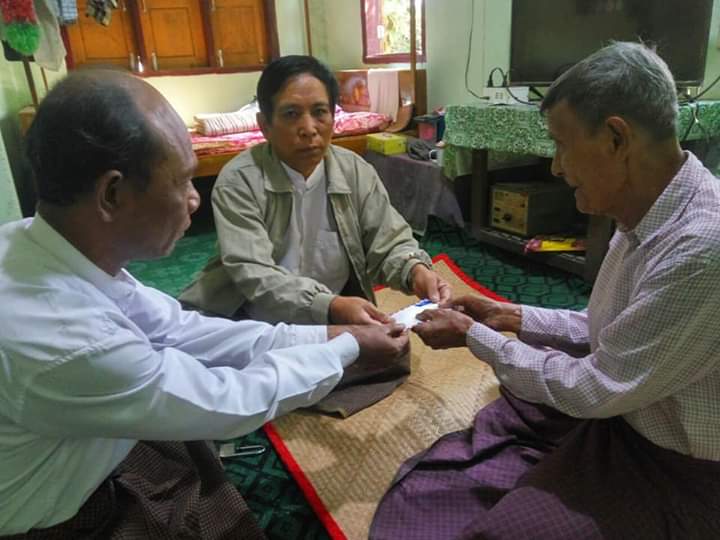 Officials from Twante Township Department of Social Welfare, Relief and Resettlement paid a domiciliary visit to provide social pension to elderly people over 85-year old in Twante Township, Yangon Region this morning.