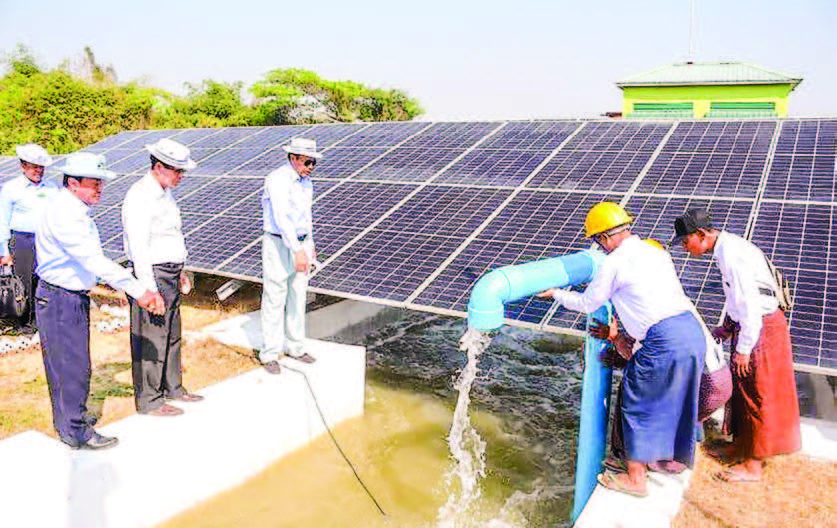 The Irrigation and Water Utilization Management Department has commenced solar-powered water pumping operations in Yaepawthaung Village, Htantabin Township, and Thabyaytan Village, Taikkyi Township.