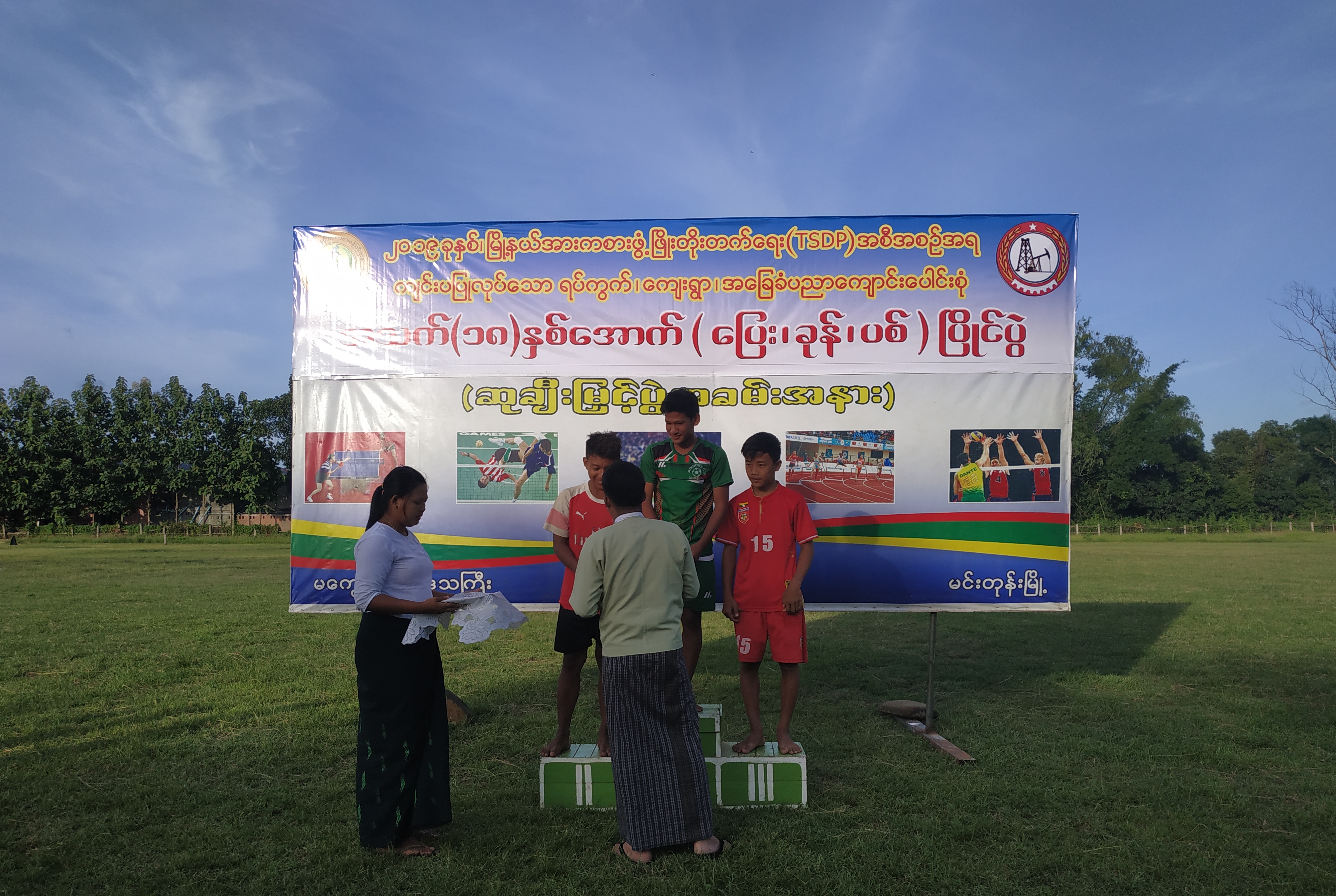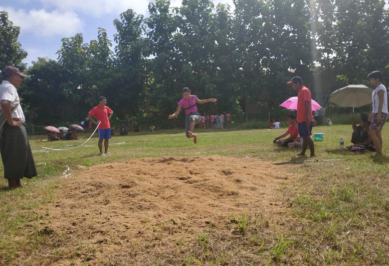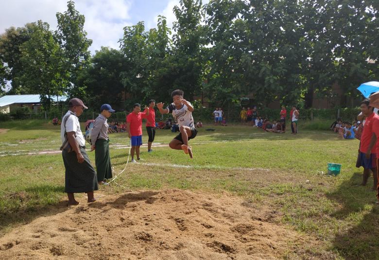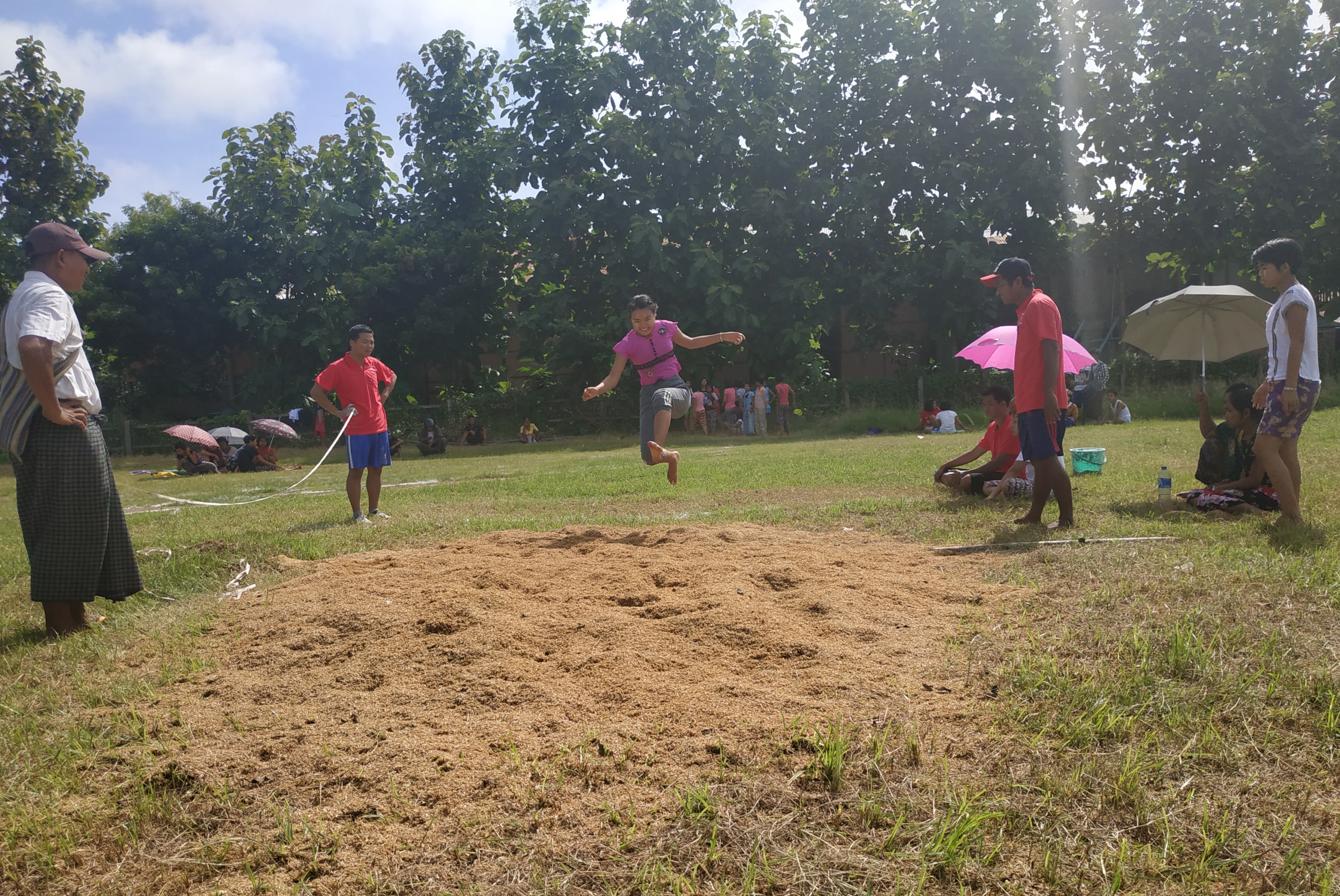 The inter-schools U-18 track and field contest was held in conjunction with a prize awarding event at the township sports ground in Mindon Township, Magway Region yesterday morning.