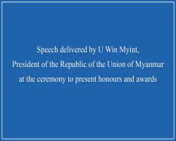 Speeches Speeches Republic of the Union of Myanmar State Administration Council Chairman Senior General Min Aung Hlaing sends Message of Greetings on occasion of 74th Anniversary Union Day Speeches 12/02/21 Senior General makes speech at Union Government meeting Speeches 03/02/21 Speech delivered by U Win Myint, President of the Republic of the Union of Myanmar at the ceremony to present honours and awards Speeches 05/01/21 Foreign Heads of State send felicitations to President U Win Myint Speeches 04/01/21 Foreign Heads of State send felicitations to State Counsellor Speeches 04/01/21 Message of Greetings sent by President U Win Myint on the occasion of the 73rd anniversary celebration of Independence Day Speeches 04/01/21 2021 New Year Message from Vice-President U Henry Van Thio Speeches 01/01/21 New Year Greetings by Amyotha Hluttaw Speaker Mahn Win Khaing Than Speeches 01/01/21 2021 New Year Message from President U Win Myint (1 January 2021) Speeches 01/01/21 New Year Greetings by Pyithu Hluttaw Speaker U T Khun Myat Speeches 01/01/21 Pagination First page « First Previous page ‹ Previous Page 1 Page 2 Current page 3 Page 4 Page 5 … Next page Next › Last page Last » Most read news Observers from Russia, China, India, Vietnam arrive in Yangon ahead of 2025 General Election Local 27/Dec/2025 UEC Chairman receives Belarus CEC Deputy Chairman Local 27/Dec/2025 Bagan’s Mahabodhi Pagoda renovation by ASI India around 80% complete Culture & Travel 27/Dec/2025 Retired US Army Colonel: Myanmar’s Elections Give Washington A Chance To Reset Decades-Stalled Ties Political 26/Dec/2025 Cambodia earns 9.71 bln USD from exports to ASEAN, EU in first 11 months of 2025 International 24/Dec/2025