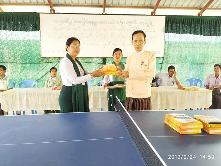 At the ceremony, MP U Tin Hla of Pyithu Hluttaw, Head of the school gave remarks and chairman of Township Table Tennis Committee U Win Naing clarified the purpose of provision.