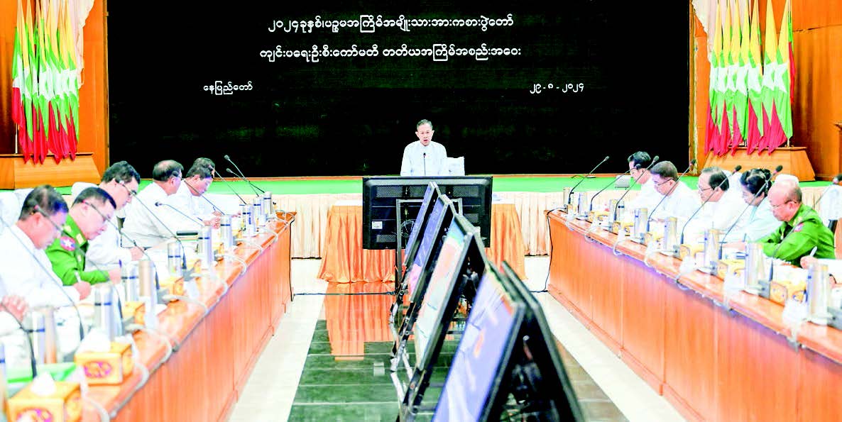 Chairman of the Leading Committee Union Minister for Sports and Youth Affairs U Min Thein Zan reported on the accomplishment of the previ­ous meeting’s minutes, setting sports events and awarding pro­grammes.