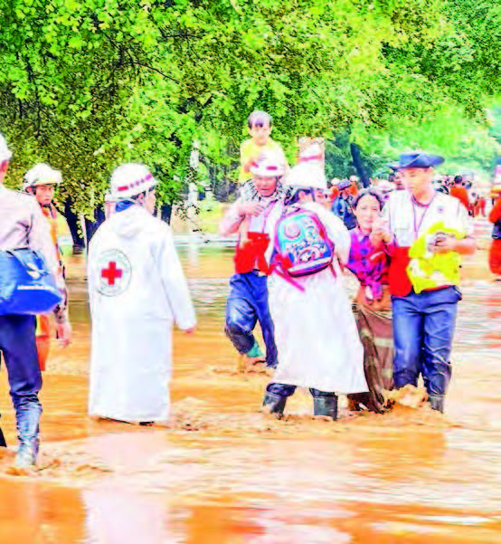 Since the morning of 12 September, the Myanmar Fire Brigade has responded to 30 flood-affected locations, evacuating a total of 3,602 people to safety areas in Nay Pyi Taw. Similarly, local Red Cross volunteers, in cooperation with relevant departments and rescue teams, are providing first aid to the injured and assisting in the rescue of flood victims.