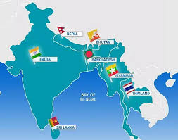 The BIMSTEC groups seven nations of South Asia and Southeast Asia including Bangladesh, Bhutan, India, Myanmar, Nepal, Sri Lanka and Thailand.