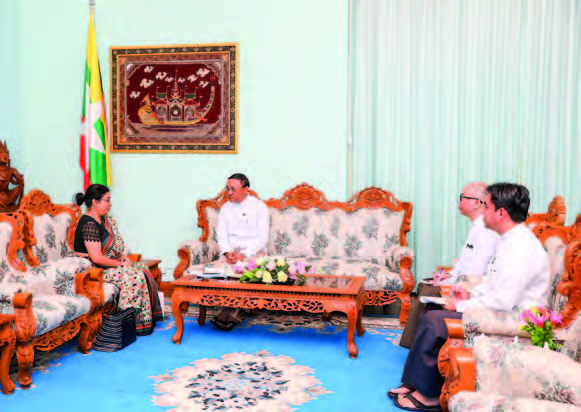 DEPUTY Minister for Foreign Affairs U Ko Ko Kyaw received Mrs Ponnamperuma Arachchige Prabashini Ponnamperuma, Ambassador Extraordinary and Plenipotentiary of Sri Lanka to the Republic of the Union of Myanmar, yesterday at the Ministry of Foreign Affairs in Nay Pyi Taw.