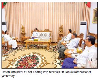 Union Health Minister Dr Thet Khaing Win received Sri Lankan Ambassador to Myanmar Mr J M J P Bandara, who had completed his tour of duties in Myanmar, at the Union Minister’s office yesterday.