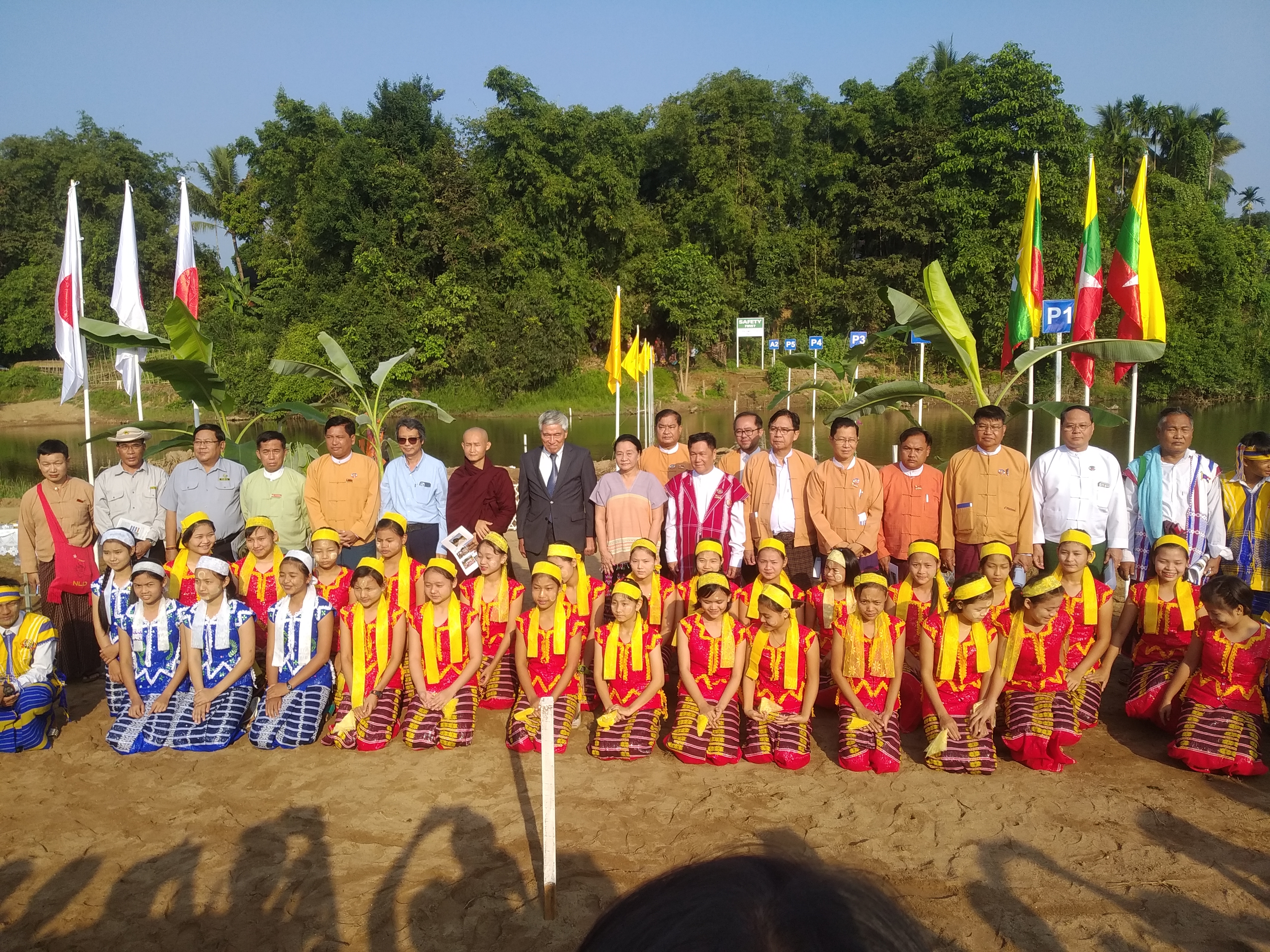 The bridge will be built under the financial assistance from Japan Infrastructure Partners (JIP) with a view to narrowing development gap between urban and rural areas, upgrading rural road transports, and improving socioeconomic status such as education, social, and health sectors of the rural people. At the ceremony, Chief Minister of Kayin State Daw Nang Khin Htwe Myint delivered an opening address and Vice-President of JIP Mr. Asakura Hajime explained matters relating to construction of the bridge.