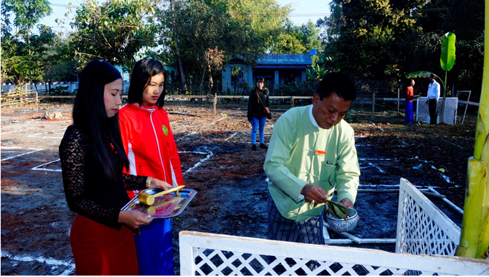 A stake-driving ceremony for construction of a staff apartment held at the compound of the People’s Hospital in Momauk, Kachin Sate this morning.