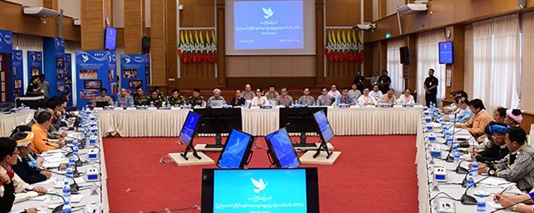 The side of government, Hluttaw and Defence Services was represented by the committee’s Vice Chairpersons Union Minister U Kyaw Tint Swe and Dr Tin Myo Win; Union Ministers U Min Thu, U Thant Sin Maung, U Thein Swe, Dr Win Myat Aye, Nai Thet Lwin; Union Attorney General U Tun Tun Oo; retired Lt-Gen Khin Zaw Oo, Lt-Gen Tin Maung Win, Maj-Gen San Myint, Maj-Gen Soe Naing Oo, Brig-Gen Ye Yint Win, Director General U Zaw Htay and U Hla Maung Shwe.