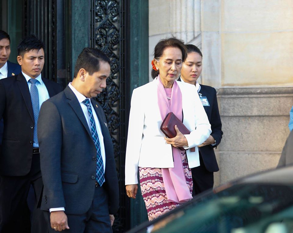 State Counsellor Daw Aung San Suu Kyi, as the Union Minister for Foreign Affairs and the Agent of Myanmar, attended the second oral proceedings’ first session on the third day of The Gambia against Myanmar at the International Court of Justice at The Hague, Netherlands, at 10 am yesterday morning local time.