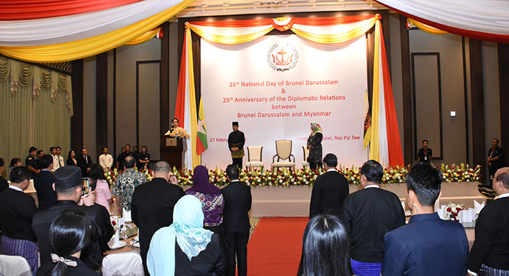 State Counsellor Daw Aung San Suu Kyi attended the celebrations to mark the 35th National Day of Brunei Darussalam and 25th Anniversary of establishment of diplomatic relations between the two countries in Nay Pyi Taw yesterday.