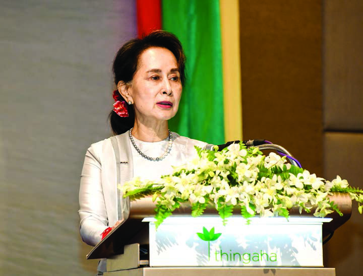 STATE COUNSELLOR Daw Aung San Suu Kyi attended a ceremony to mark the Mekong-Japan Exchange Year 2019, held at the Thingaha Hotel in Nay Pyi Taw yesterday morning.