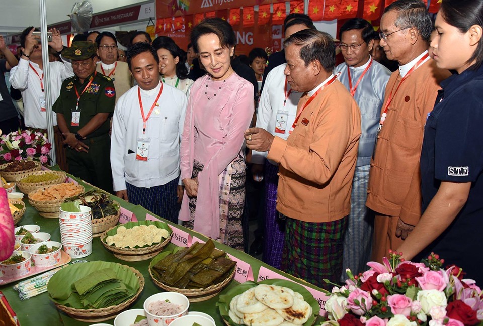 The State Counsellor then cordially greeted exhibitors of the ASEAN Food Festival while observing the exhibitions.