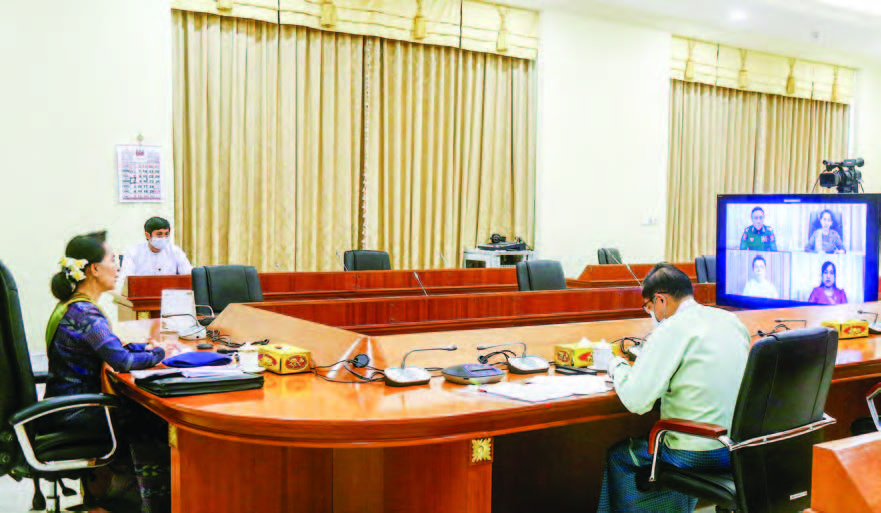 STATE COUNSELLOR Daw Aung San Suu Kyi held a videoconference with officials who are working for contact tracing for COVID-19, and carrying out prevention and control measures of this disease.