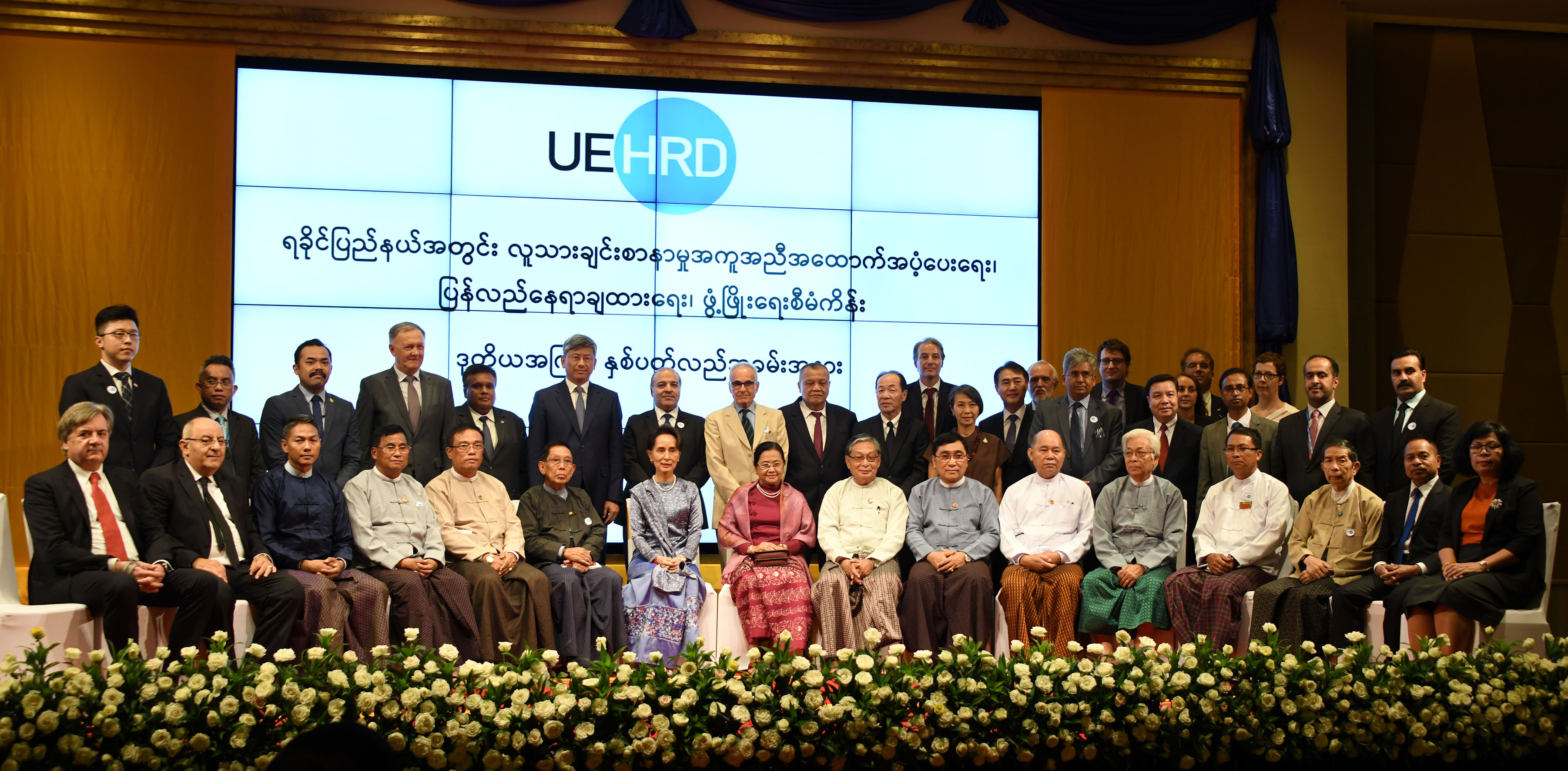 In her speech, Chairperson of UEHRD and State Counsellor Daw Aung San Suu Kyi said, “The UEHRD was established in 2017 to address conflicts and problems of Rakhine State in collaborative efforts. We have understood that it is concerned with the whole union. It means that the best outcomes in a certain region must be appreciated by those from other areas. Everybody must rejoice over the welfare and prosperity of others.