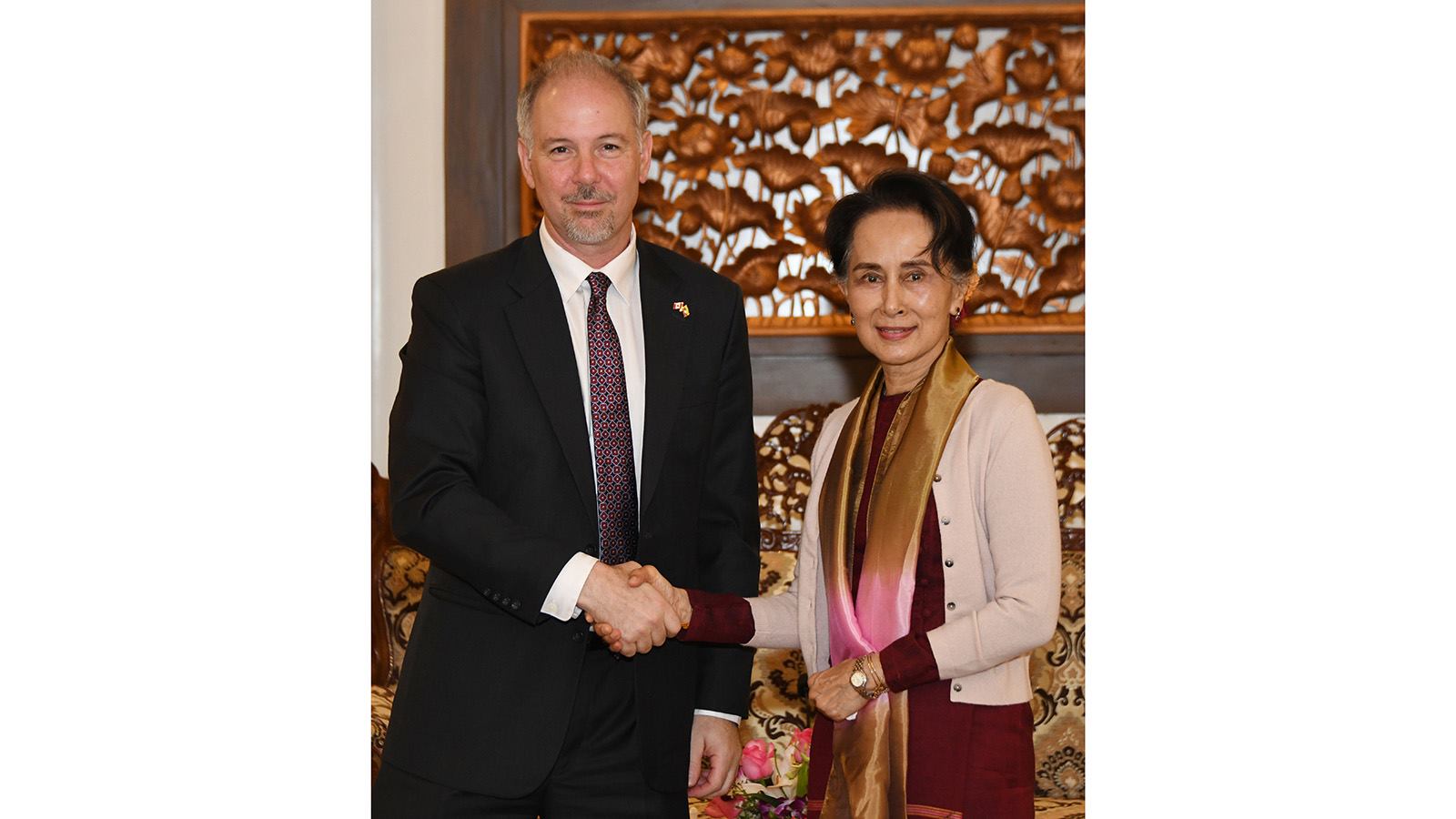 Daw Aung San Suu Kyi, State Counsellor and Union Minister for Foreign Affairs of the Republic of the Union of Myanmar received Mr Francois Lafreniere, Ambassador of Canada to Myanmar in Nay Pyi Taw at 10:00 am yesterday. During the meeting, they exchanged views on matters related to the enhancement of the bilateral relations and cooperation between Myanmar and Canada, continued support on Myanmar’s democratization process and developments were cordially discussed.—MNA
