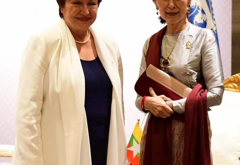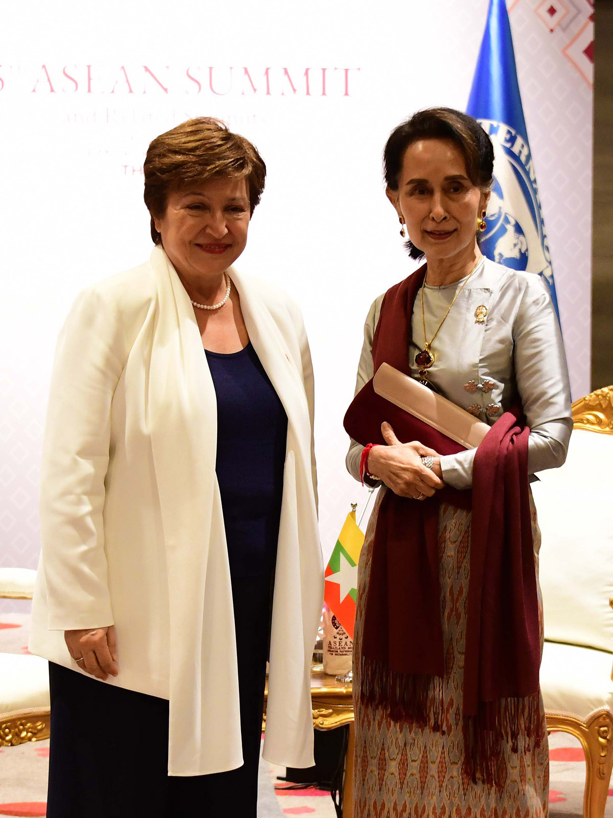 State Counsellor Daw Aung San Suu Kyi met Ms. Kristalina Georgieva, Managing Director of IMF, at Impact Sapphire-104, the venue of the ASEAN Summit, at 3.45 pm local standard time.