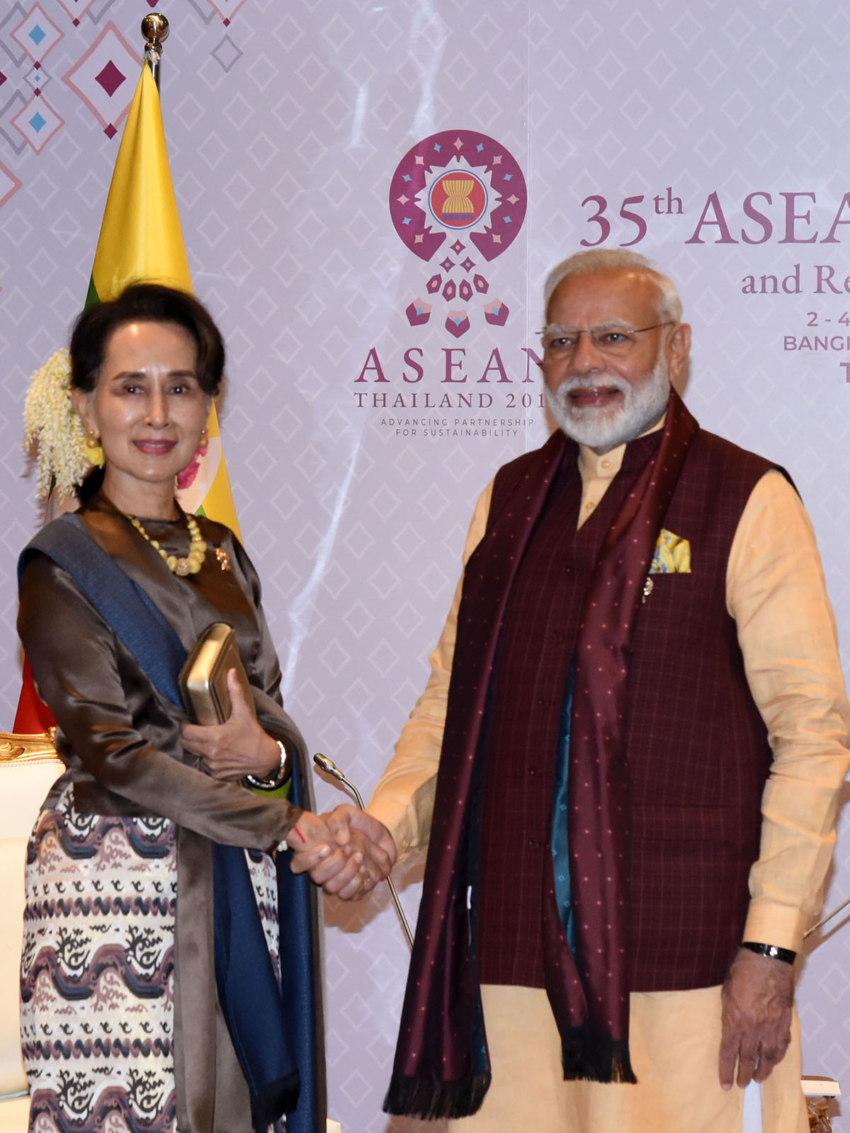 State Counsellor Daw Aung San Suu Kyi held talks with the head of International Monetary Fund (IMF), the president of International Federation of Association Football (FIFA) and the prime minister of India at separate meetings at the Impact Muaung Thong Thani Commercial Complex, the venue of ASEAN Summit and Related Summits in Bangkok.