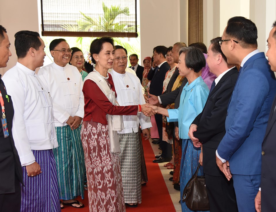 Present at the Luncheon were Union Minister Thura U Aung Ko, Ministry of Religious Affairs and Culture which is focal Ministry for the ASEAN Socio-Cultural Community, Union Minister U Thaung Tun, Ministry of Investment and Foreign Economic Relations which is focal Ministry for the ASEAN Economic Community, Union Minister U Kyaw Tin, Ministry of International Cooperation which is focal Ministry for the ASEAN Political-Security Community and spouse, ASEAN Ambassadors and their spouses, Permanent Secretaries from the focal Ministries of the three Pillars of ASEAN Community, Deputy Chiefs of Missions from the ASEAN Embassies, and Directors General and Deputy-Directors General from the Ministry of Foreign Affairs.