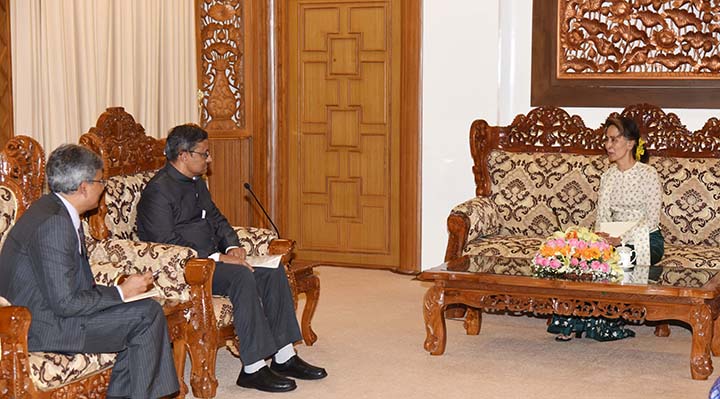 State Counsellor and Union Minister for Foreign Affairs Daw Aung San Suu Kyi received Mr. Sanjay Mitra, Secretary of the Ministry of Defence of the Republic of India at the Ministry of Foreign Affairs, Nay Pyi Taw at 3:00 p.m. on 16 May 2019.