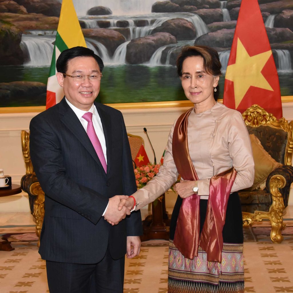 H.E. Daw Aung San Suu Kyi, State Counsellor and Union Minister for Foreign Affairs of the Republic of the Union of Myanmar received H.E. Mr. Vuong Dinh Hue, Deputy Prime Minister and Member of the Politburo Committee of the Socialist Republic of Viet Nam at the Presidential Palace in Nay Pyi Taw on 17 June 2019 at 3:30 p.m.