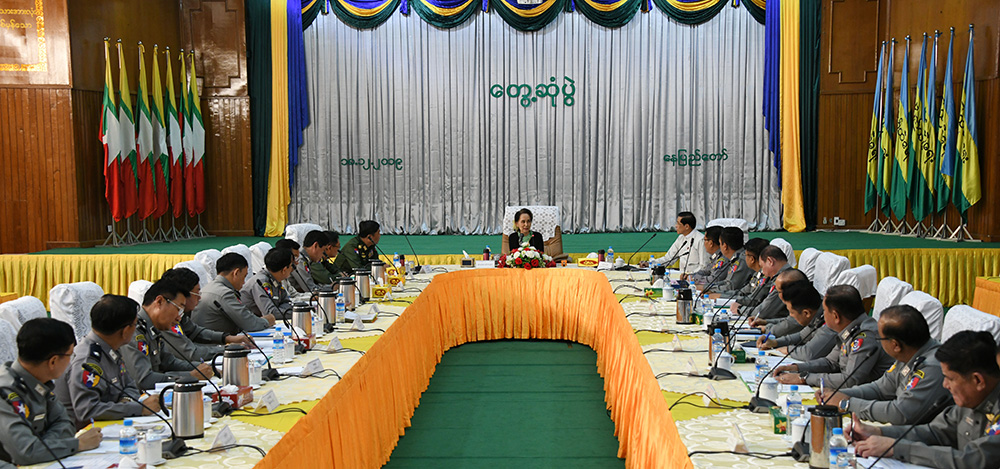 State Counsellor Daw Aung San Suu Kyi held a meeting with the Chief of Myanmar Police Force and senior police officers at the headquarters of the Ministry of Home Affairs in Nay Pyi Taw yesterday morning.