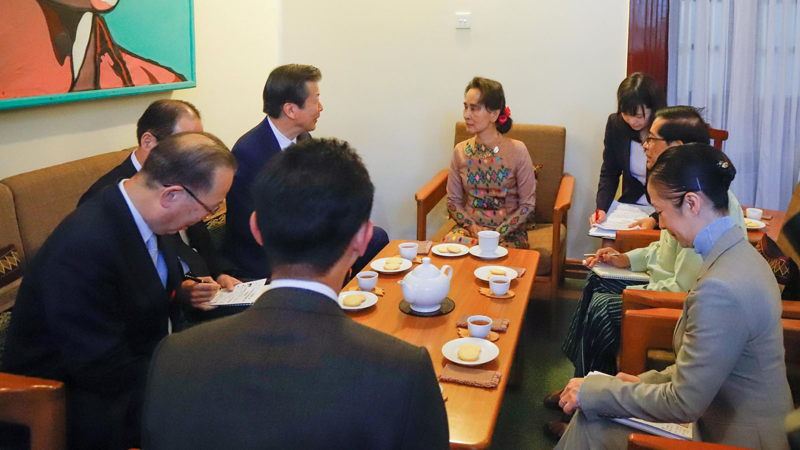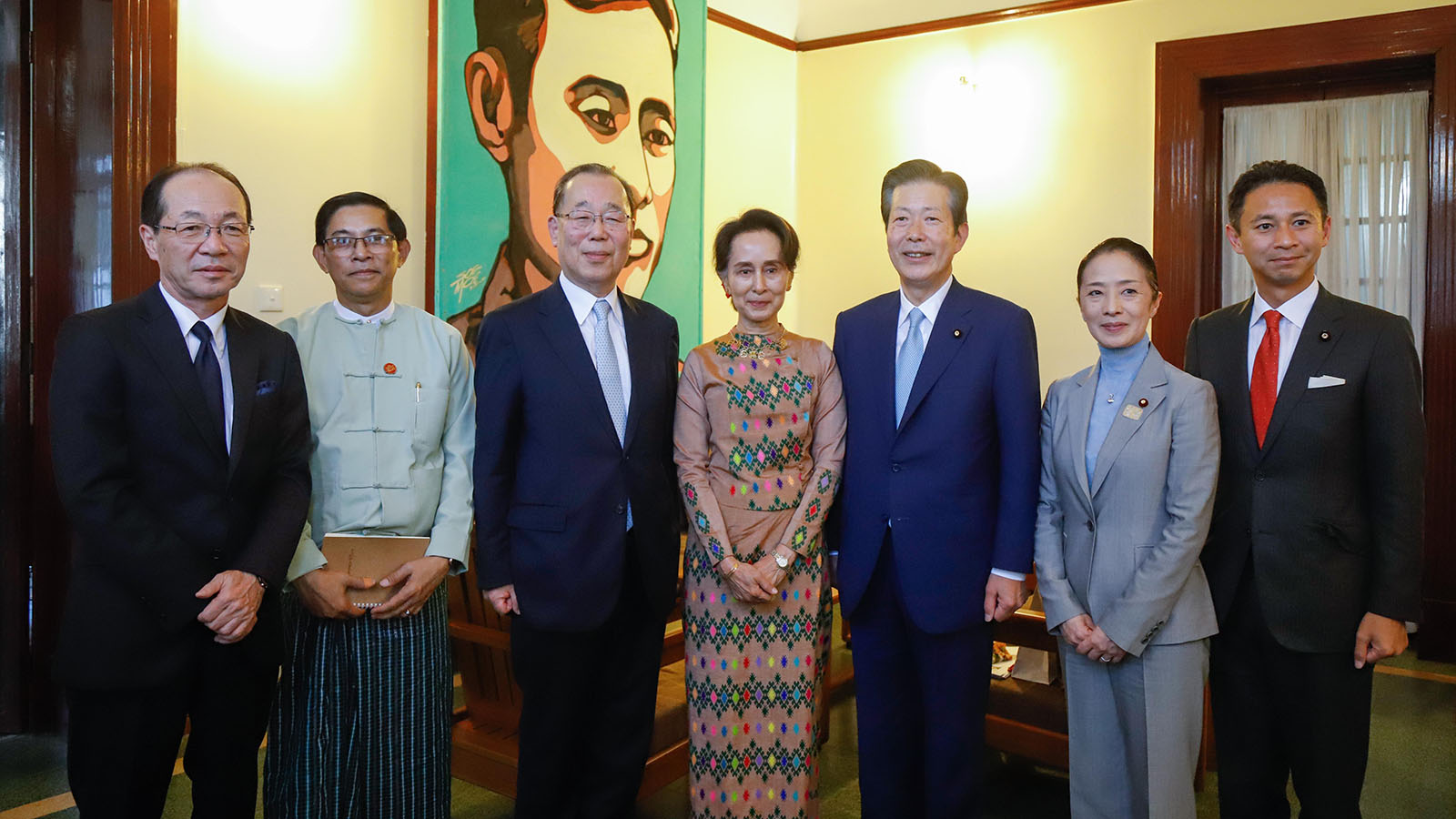 State Counsellor and Union Minister for Foreign Affairs Daw Aung San Suu Kyi received Mr Yamaguchi Natsuo, the Upper House MP and the Chief Representative of Komeito party which is a partner of the current coalition government, at her residence in Bahan Township, Yangon, yesterday afternoon.