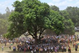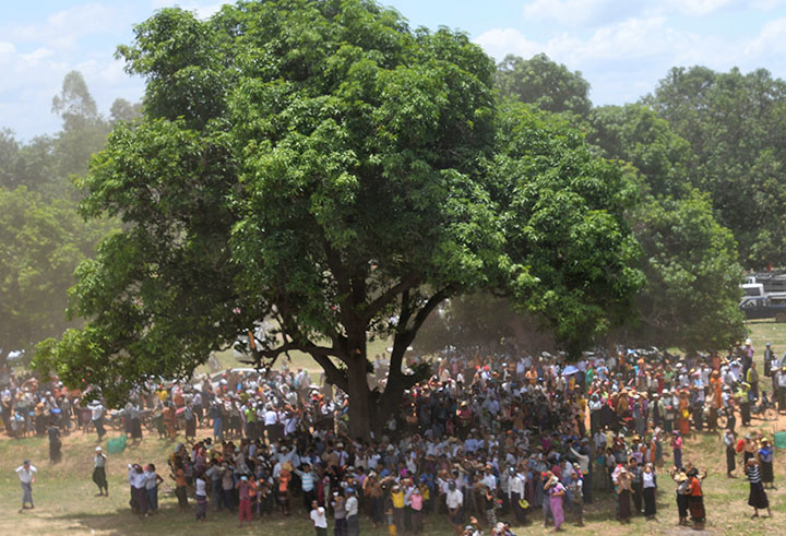 From there, the State Counsellor and party went by Tatmadaw helicopters to a meeting with local people in a temporary pandal at Pwintbyu Township, Yaypotegyi Village Tract, Yaypotegyi Village.