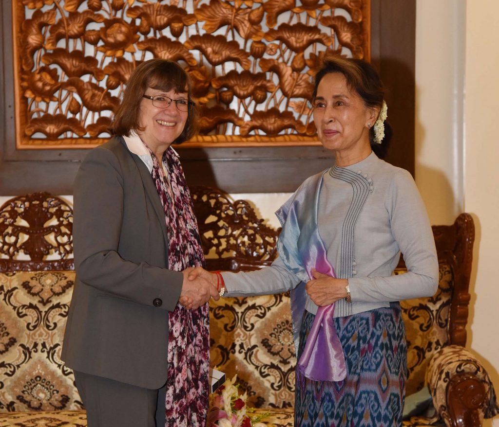 Daw Aung San Suu Kyi, State Counsellor and Union Minister for Foreign Affairs, received Mrs Dorothee Janetzke-Wenzel, Ambassador of the Federal Republic of Germany, who has nearly completed her tour of duty in Myanmar at 10 am on 25th June 2019 at the Ministry of Foreign Affairs in Nay Pyi Taw.
