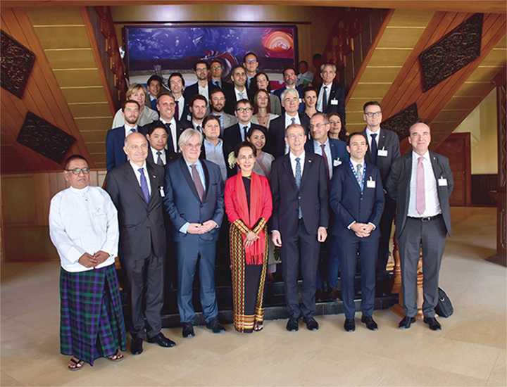 Daw Aung San Suu Kyi, State Counsellor of the Republic of the Union of Myanmar, received the MEDEF International business delegation from France led by Mr Christian Lechervy, Ambassador of France to Myanmar at 10:00 am on 5 February 2020 at the Ministry of Foreign Affairs, Nay Pyi Taw.
