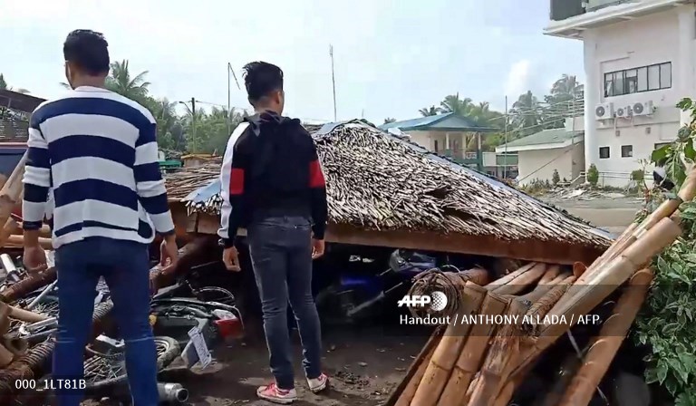 A teenage boy was crushed by a falling wall as he tried to escape his school in Magsaysay, the town spokesman told AFP. Though other students were injured in a "stampede" to escape the building, they survived.