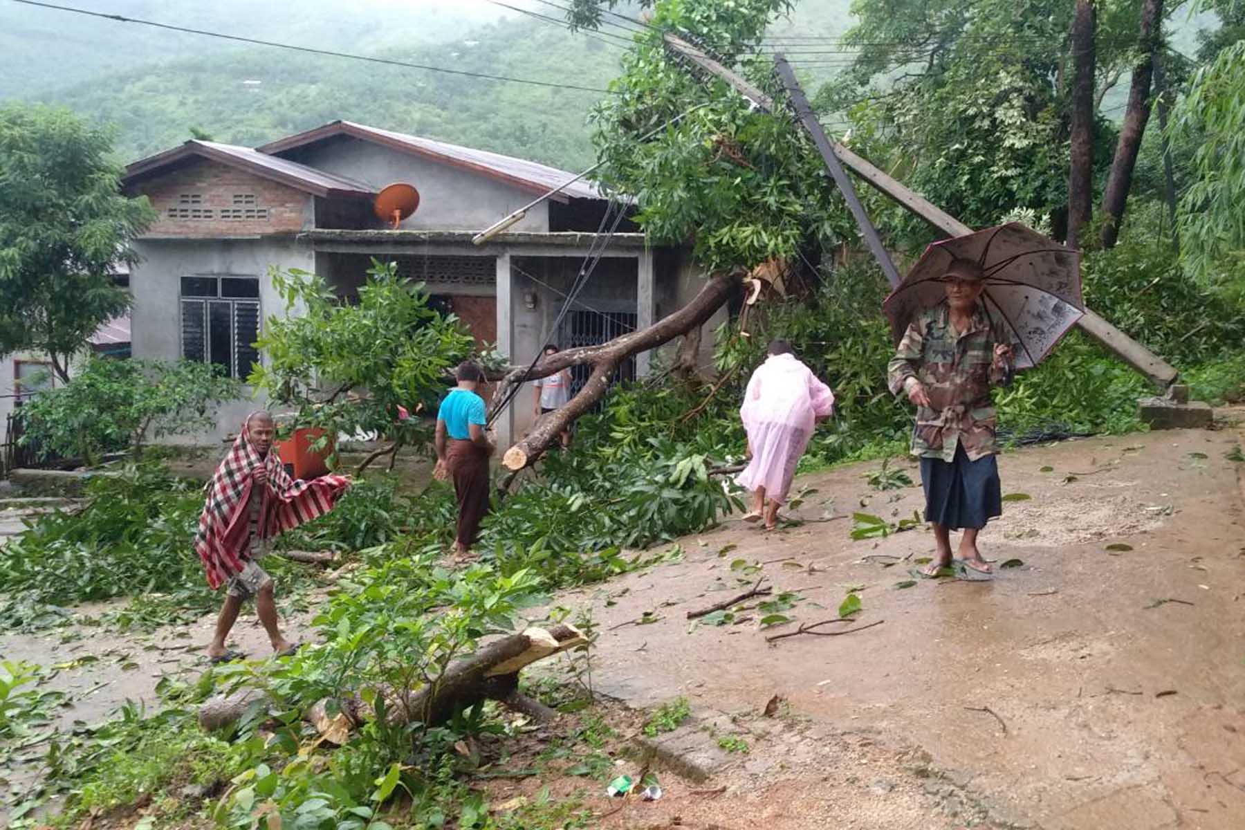 Due to unceasing rains and strong winds, a tree fell onto a residential barrack in Shwepyisoe village and badly damaged its roof. Three houses near a coastline in Palontonetone village collapsed in the gusty winds. Similarly, some trees and lamp posts fell down, damaging houses, blocking roads in Shwe Pyi Thar ward in the town of Kawthoung. No casualty was reported in the incidents.