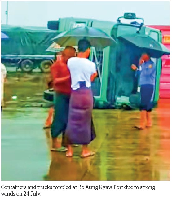 STRONG winds that struck on the morning of 24 July caused significant disruptions at the Inland Container Depot II (ICD II) in Bo Aung Kyaw Port, located in Botahtaung Township, Yangon, leading to a temporary suspension of container handling operations for three days, according to U Myo Htut Aung, spokesperson for the Myanmar Container Trucks Association.