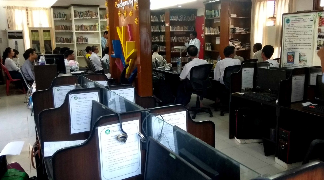 First of all, patron of Myanma  Myetpwint library committee U San Aung delivered a speech. Then, the library committee chairman U San Maung clarified the purpose of the course and called on the trainees to practically apply what they have learned in the course in workplaces.