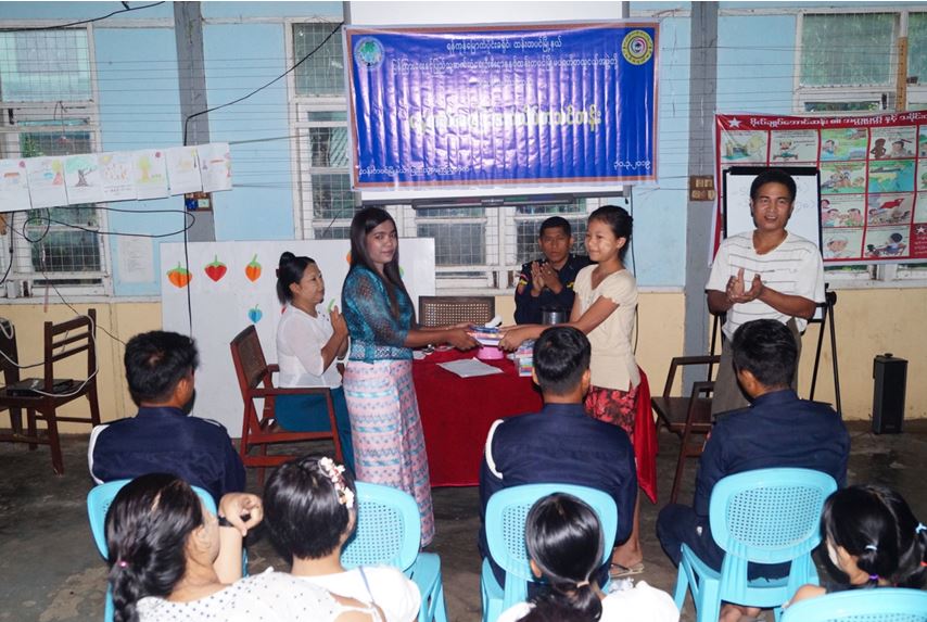 First of all, course instructor Daw Ohnmar Tun delivered an opening speech. This was followed by the presentation of the completion certificates to the students by officials from the township IPRD, Fire Services Department and Youth Philanthropic Group.