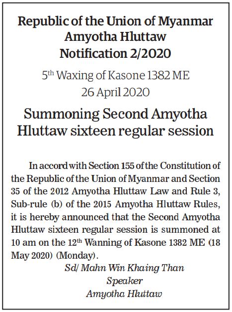Summoning Second Amyotha Hluttaw sixteen regular session