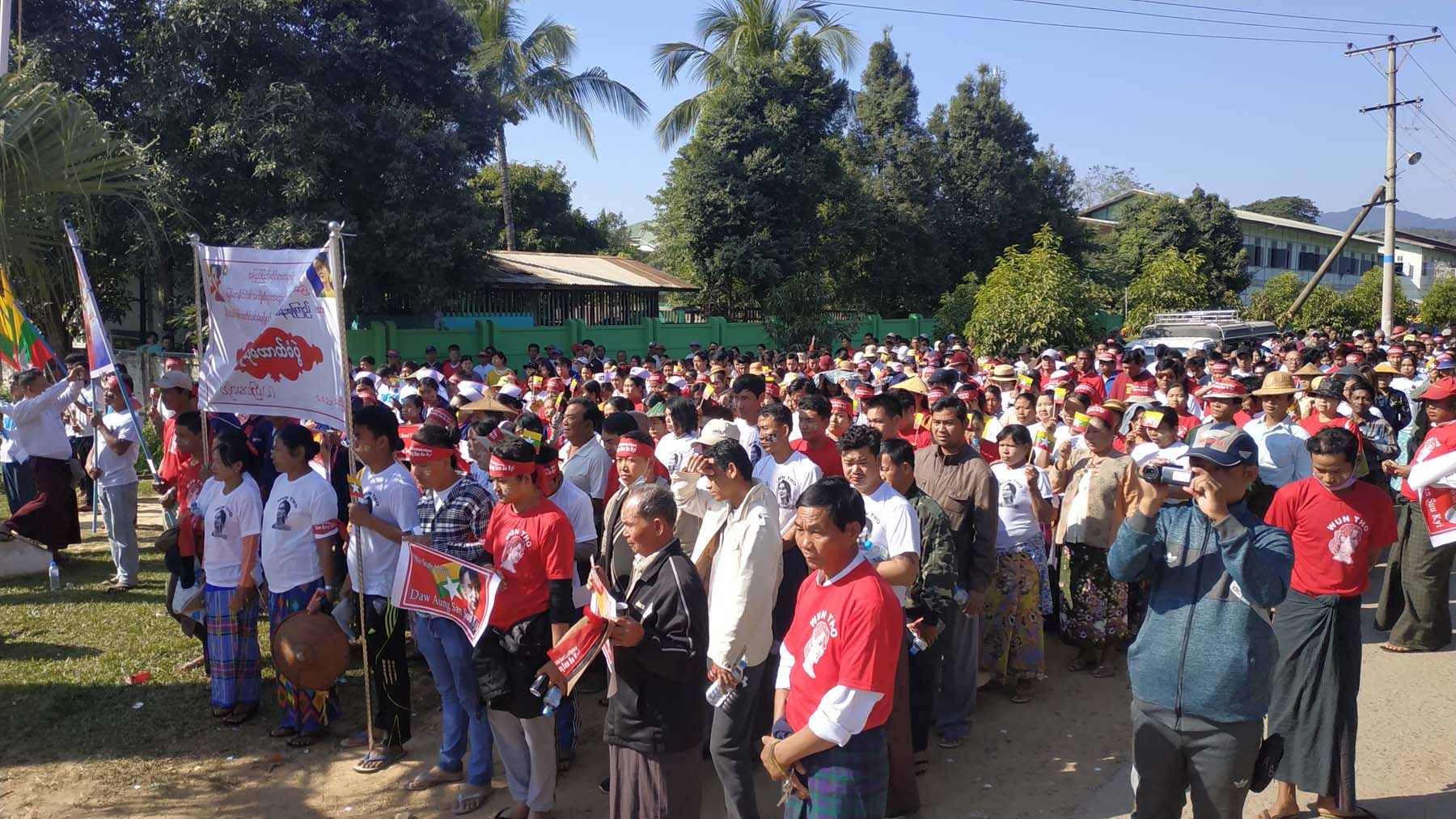 A huge crowd of supporters gathered at the independence monument ground in the town of Wuntho, Katha district, Sagaing region this morning.