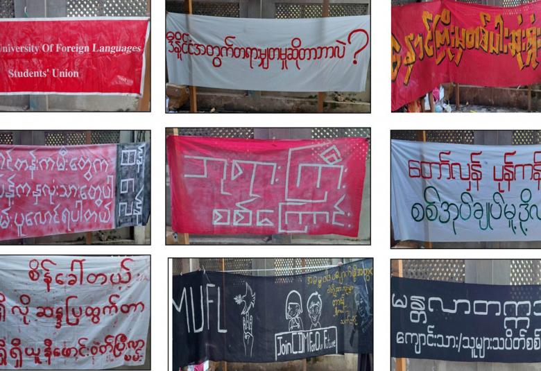 Suspect Khine Zin Zuu admitted that Hein Min Zaw bought signboards, posters and clothes used in protests and Thura Aung mainly provided needed materials, food and accommodation for protestors.