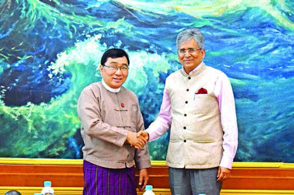 During the meeting with the Ambassador, they discussed how India’s government is cooperating with the Ministry of Industry to conduct industrial skill-related courses to local residents in Pakokku and Myingyan, organizing similar short-term and longterm courses in Rakhine State, and the implementation of the five-year collaboration project between Myanmar and India to develop Rakhine State with a budget of US$5 million per year.