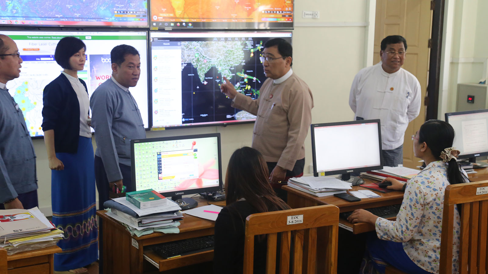 Next, the Union Minister and Deputy Minister U Soe Aung responded to the explanations observed the daily operations of the EOC.