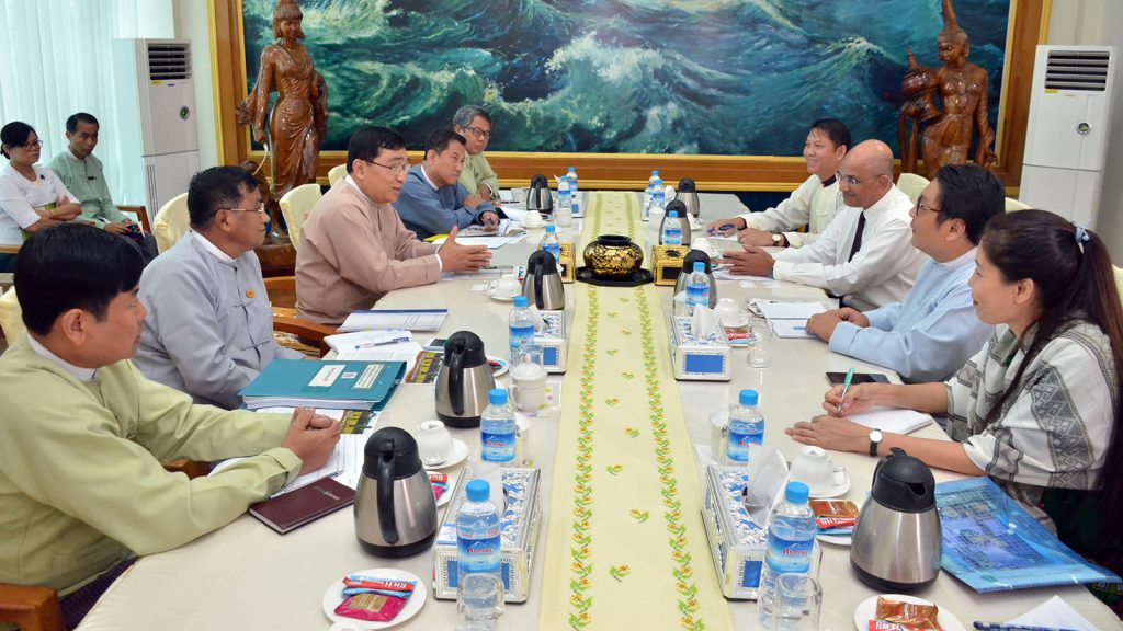 Union Minister for Social Welfare, Relief and Resettlement Dr Win Myat Aye received a delegation from World Vision International Myanmar at his office in Nay Pyi Taw yesterday.