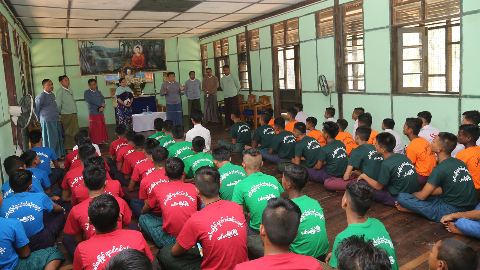 The Union Minister visited the Mawlamyine Youth Training School where they were explained about the school by its principal and had inspected the hair cutting, welding, computer and agriculture trainings, practicing Myanmar’s traditional martial arts (Myanmar’s Thaing) for physical fitness, construction of a multi-purpose stadium and bedrooms of the trainees.