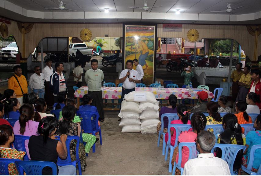 Responsible persons from Taninthayi region government met with flood victims in temporary camps and provided them with food supplies in the town of Myeik, Taninthayi region yesterday.