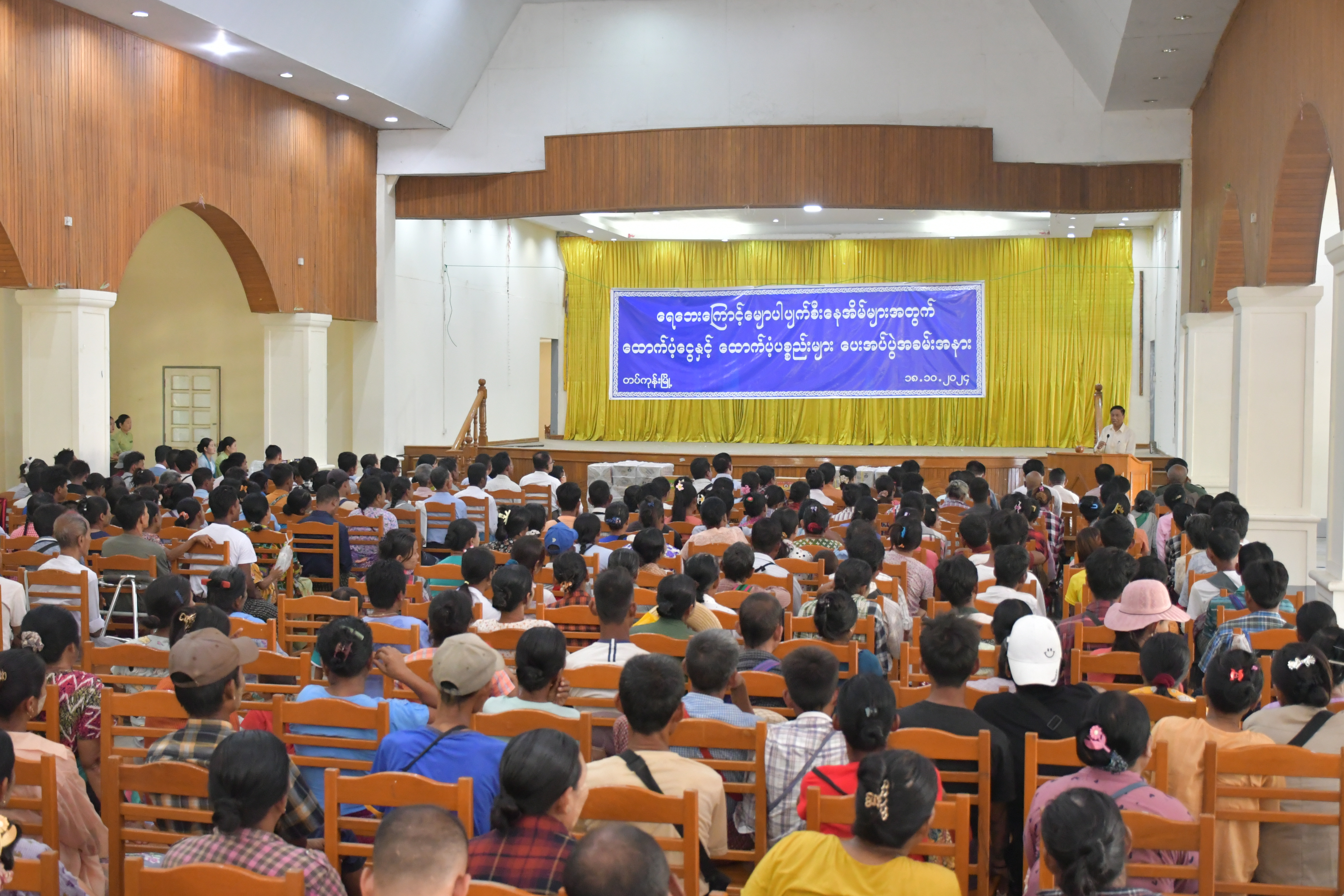 The Vice-Chairperson 2 of the National Disaster Management Committee Union Minister for Social Welfare, Relief and Rsettlement Dr Soe Win, along with Nay Pyi Taw Council members, attended a ceremony yesterday morning at the Aung San Hall in Tatkon, Nay Pyi Taw, where financial aid and food supplies were provided to flood-impacted families.