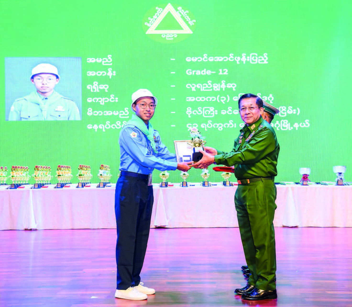 Adjutant-General Lt-Gen Soe Min Oo reported on more than five-distinction winners, the highest pass rate winning schools and prizes for outstand­ing students.