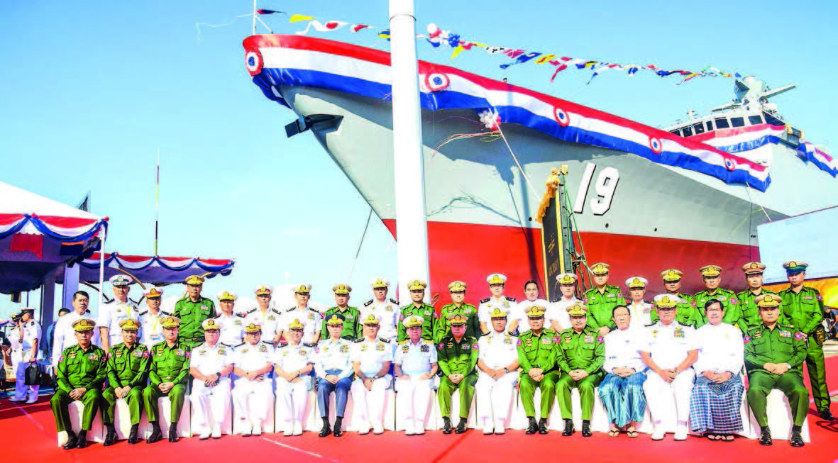 AT the ceremony to mark the 77th Anniversary of Tatmadaw (Navy) of the Republic of the Union of Myanmar, State Administration Council Chairman Defence Services Commander-in-Chief Senior General Min Aung Hlaing attended the ceremony to christen and launch a 135-metre Frigate built by Tatmadaw (Navy) at the Naval Dockyard Command Headquarters in Thanlyin Station yesterday morning.