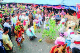 The Taungpyone festival is very crowded, with people coming from all over the country. Each tradition of the festival is celebrated day by day. During the festival day, the spirit dance is the main feature and is very popular among visitors.